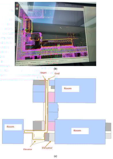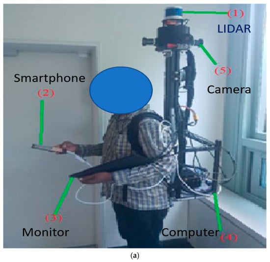 The extraordinary development of state-of-the-art indoor location-based services (LBS) is accelerating the expansion of indoor positioning techniques [1,2]. The current demand for determining the location of dynamic agents such as humans and robots in indoor environments has been achieving unprecedented importance for society and scientific purposes. There are different techniques of indoor localization approaches such as infrastructure-based approaches and infrastructure-free approaches. Wireless fidelity (Wi-Fi) [3,4,5], radio frequency identification (RFID) [6,7,8,9], ultrawide-band (UWB) [10,11], and Bluetooth (BLE) [12] are among those techniques that require tailored infrastructure. These approaches need the distribution of Wi-Fi access points (Aps), tags, and BLE beacon signals when indoors to sense the environment. The infrastructure-free [13] approaches usually require the pre-built infrastructure to update the position. Each of these techniques has its own limitations as well as advantages. Among efficient cost-effective techniques, the self-contained PDR algorithm is the most popular. The convenience of utilizing a smartphone-based indoor localization system is that it requires no infrastructure deployments. In our case, we focused on the cost-effectiveness and scalability of large environment sensors such as inertial and LIDAR sensors. This approach is usually adopted for mobile indoor localization.