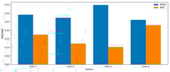 The RMSE and MAE comparison for each sequence measurement by each user (scenario 2).