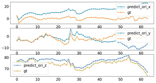 Figure 10 shows the sample sequence 01 of user 1. The orientations shown here were achieved by converting the quaternion to a Euler angle. As indicated in Figure 10, the orientation impacted the position error by using the phone orientation and the ground truth orientation. We can see that the orientation module improved the performance of all other position models (quite significantly for CNN-LSTM), but it also nearly reached the theoretical maximum performance where ground truth orientations were directly provided.