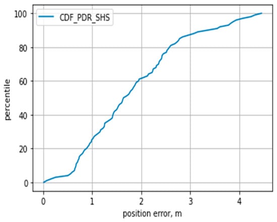 By taking the sample trajectory from the collected sequence of IMU data for scenario 2, we estimated the position using conventional SHS-based PDR. First, we estimated the step and step length using biomechanical methods. Second, we used the attitude and heading reference system-based heading estimation. Finally, positions were estimated by multiplying the step length with heading estimation techniques.