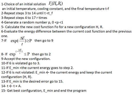 As previously explained, the GDS technique may not be directly applicable, and it is necessary to quantify the relationship between the two parameters H and R on one side and the position and the source temperature on the other side. To do so, we first propose an automatic search algorithm based on simulated annealing in order to find the best position of the sensors with respect to the heat source on one side and on the other side to know if the position of the sensors changes with the change of the value of the source. Once the automatic search algorithm finds the best parameters , the thermal sensors remain fixed, and the temperature of the source is interpolated using the GDS technique.