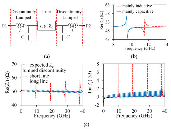 In this case, in addition to the effect of C and L, the distributed effect associated with the transition discontinuity introduces oscillations that further complicate the determination of the frequency-dependent Zc (see Figure 2b).