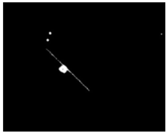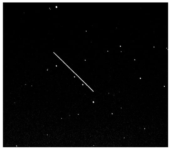 In this paper, we focus on the images of space targets acquired in the “stellar gazing mode” of the telescope, as shown in Figure 1, in which the stars appear as dots and their positions are constant between adjacent frames, and the space target is in the shape of a dashed line and the same direction as the motion of the stars.