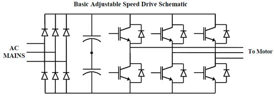 Schematic diagram of the basic six-switch inverter/three-phase motor [].