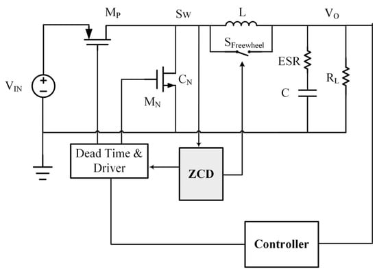 - Gao, Y.; Wang, S.; Li, H.; Chen, L.; Fan, S.; Geng, L. A Novel Zero-Current-Detector for DCM Operation in Synchronous Converter. In Proceedings of the IEEE International Conference on Electron Devices and Solid-State Circuits, Bangkok, Thailand, 3–5 December 2012; pp. 99–103. [Google Scholar]