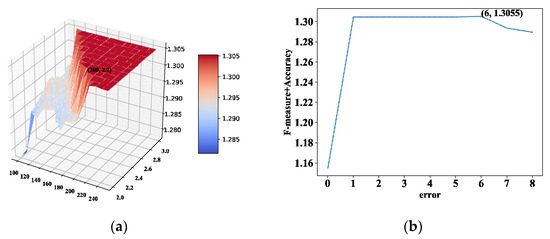 We first fixed , and experiments were conducted on the BioGrid PPI network to investigate the impact of the parameters c and k. The values of c ranged from 100 to 250, while k varied from 2.0 to 3.0. These experiments aimed to assess how the changes in c and k influenced the results and outcomes of the study. When the values of and are set, the metric attains a higher value. Next, we first fixed , and is maximized at . We set , , . In Figure 2a, the impact of parameters c and k on is illustrated, with . The relationship between the parameter and are depicted in Figure 2b, with and .