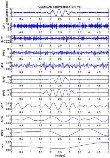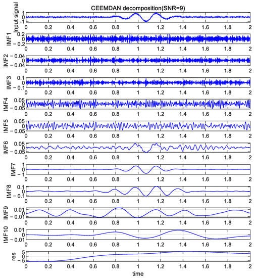 CEEMDAN decomposition of a noisy signal with an SNR of 9 dB.
