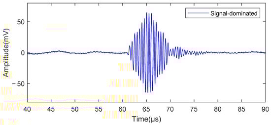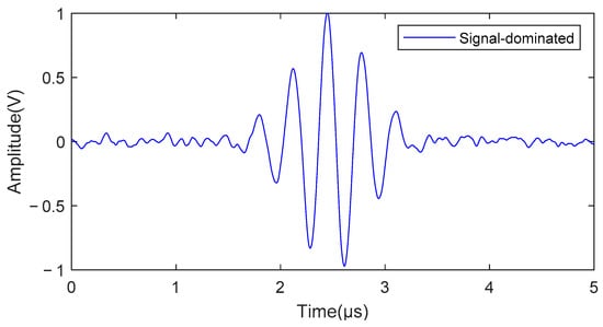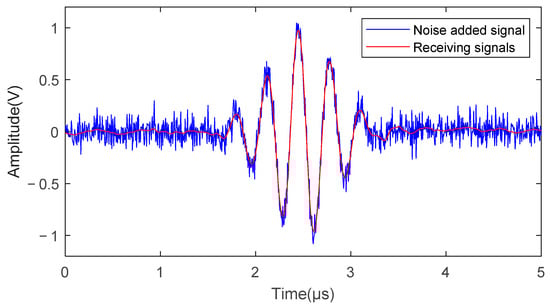 The curves shown in Figure 14 were obtained via processing the dominant part of the signal using the wavelet threshold function. The algorithm was effective in suppressing the high-frequency noise present in the received signals. SNRs were used as evaluation indicators to quantify the noise suppression effect of the algorithm. The SNR of the original signal was measured to be 12.453 dB when using the received signal as the reference signal and applying a band-pass filter (1.5 M~2.5 M). Upon processing the signal using the proposed algorithm, the SNR increased to 30.949 dB.