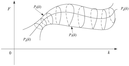 In Figure 2, shows the optimal solution in time k within region G. It can be seen that the size and position of the optimal solution change as the moment changes. When changes continuously, there exists an optimal solution at every moment, which is enclosed by the optimal solution cluster enclosed by (see Figure 3).