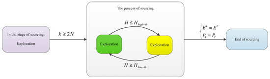 Exploration and exploitation are two basic strategies in the process of search optimization [26,30]. Exploration refers to the searching strategy aimed at obtaining the information of the objective function from the perspective of breadth in the searching process. On the other hand, exploitation refers to the searching strategy based on the function information obtained by exploration, which aims to find the optimal solution at the depth level.