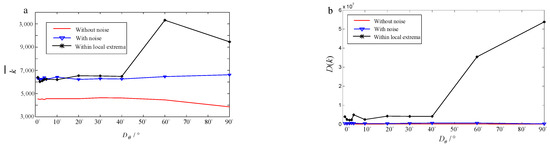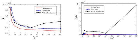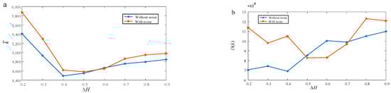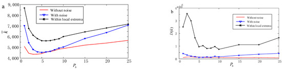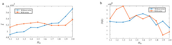 As depicted in Figure 11a, the average time consumption exhibited a decreasing trend with the increase in in both the environment with noise and that without noise. Upon reaching , converged towards the respective stable values.
