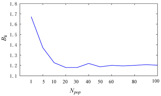 As depicted in Figure 13, served as the conspicuous demarcation point, and the mean time consumption decreased rapidly with an increase in population size within the range. In contrast, the average time consumption remained relatively stable at approximately 1.2 within the interval.