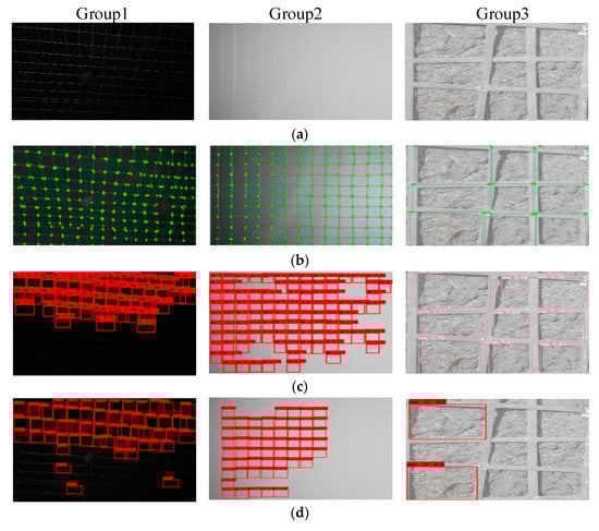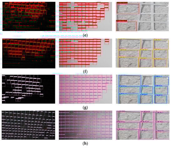 From the results of Group 2, it can be seen that in the permanently supported environment of the driving face, the scene is very dark and hazy, which leads to the common problem of missing detection in the target detection by the traditional five comparison algorithms. The present algorithm, however, uses a dark channel prior-based defogging algorithm to enhance the image and highlights the outline of the bolt mesh target during the processing. Such processing effectively solves the target leakage detection problem caused by high dust environments solving the problem of missing target detection caused by the high dust environment.