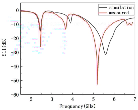Comparison of S11 curves between simulation stage and actual measurement stage.