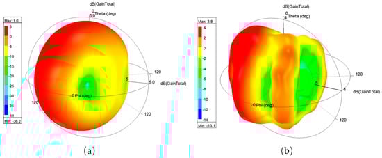 Simulated 3D radiation pattern. (a) Simulated 3D radiation pattern at 2.45 GHz (b) Simulated 3D radiation pattern at 5.2 GHz.