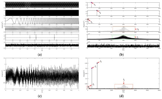 Considering the nonlinear and non-stationary nature of faulty signals, it is difficult to qualitatively explain their nonlinearity and non-stationary nature using the measured signals. Here, the simulation signal in Equation (16) is used for illustration []. The waveform of this signal is shown in Figure 9. The mathematical definition of the simulation signal is as follows: