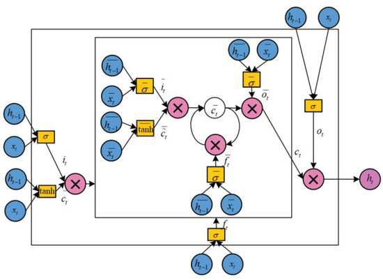 Nested LSTM is divided into internal LSTM and external LSTM. Their gating systems are consistent with the traditional LSTM. Nested LSTM has four gating systems, namely forget gate, input gate, candidate memory cell, and output gate. The calculation formulas for each gate are as follows: