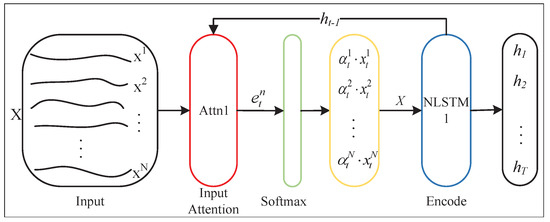 The NLSTM encoder based on the input attention mechanism is composed of the input attention mechanism and NLSTM1. Figure 3 shows its structure.