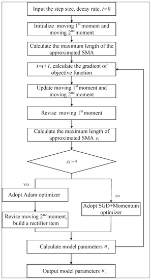 where N denotes the number of training samples. denotes the target sequence value of the training sample and denotes the predicted sequence value of the training sample. Figure 5 is the flow chart of the RAdam optimizer solving the objective function, and the steps are as follows.