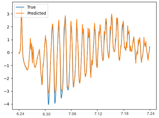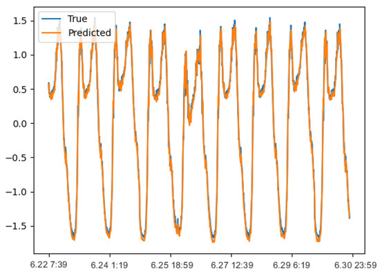 ECG (Electrocardiogram) signal has strong nonlinearity, non-stationary nature, and randomness, making it both precise and challenging to analyze. It is important for patients with potential Sinus rhythm, coronary heart disease, hypertension, and other diseases to predict ECG signals in advance and identify sudden cardiac death, which can save lives through timely intervention during sudden cardiac events. Figure 14 illustrates the fitting diagram depicting RAdam-DA-NLSTM’s performance in predicting ECG signal datasets. BCG (Ballistocardiogram) is a graphical representation of the cardiac shock signal generated by the movement of the heart in response to blood ejection. It carries valuable information about cardiac function and condition, and can provide early indications of potential cardiac abnormalities. Extracting heart-related information from cardiac shocks using BCG signals and detecting abnormal cardiac shocks to diagnose heart disease can significantly assist in remote patient monitoring. Figure 15 showcases the fitting diagram of RAdam-DA-NLSTM for BCG signal dataset prediction.