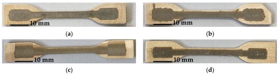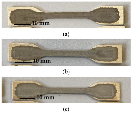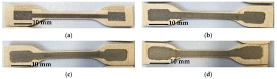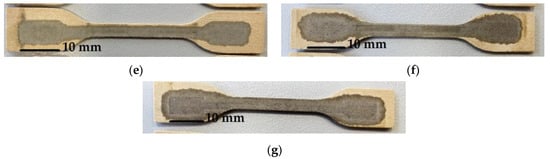 As previously mentioned, 30 layers of AgNP ink were deposited on the differently oriented sample and thermally sintered. The example photographs of prepared samples are presented in Figure 4.