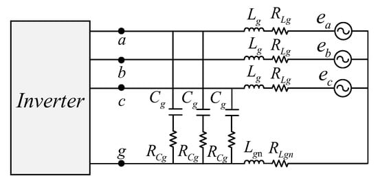 In order to analyze the admittance characteristics and stability of the typical three-phase four-wire inverter system, this section will focus on the derivation of the admittance model of the TFSCI. Due to the main focus of this article being the admittance characteristics of inverters in the high-frequency range within a weak power grid, the influence of the phase-locked loop (PLL) on the output characteristics in this frequency range is considered to be minimal. Therefore, when modeling the system, the impact of the PLL is neglected. Figure 2 shows the equivalent control block diagram of the TFSCI connected to the grid. In Figure 2, and is the DC side capacitor of the inverter, and n is the midpoint of the DC side capacitor.