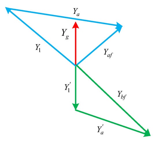 In the three-phase three-wire inverter system, references [23,24] used the grid voltage feedforward strategy to improve the harmonic suppression ability of the inverter. This method is equivalent to an additional parallel admittance on the output admittance of the original inverter. At this time, the equivalent admittance of the inverter output becomes . The blue vector in Figure 6 shows the grid voltage feedforward admittance remodeling process. It can be seen that after the introduction of voltage feedforward, the output admittance amplitude and phase of the three-phase three-wire inverter are reduced, the harmonic suppression ability of the inverter is enhanced, and the resonant damping effect of the control loop is improved.