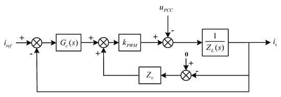 When the proposed oscillation suppression method based on SOGI and negative third-order differential element is adopted, the closed-loop control block diagram of TFSCI is shown in Figure 8, where Gc(s) represents the transfer function of the PI current controller and kPWM represents the gain of inverter bridge.
