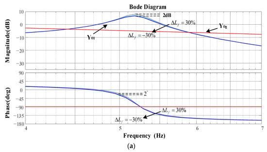 Secondly, the influence of filter inductance deviation on the effect of inverter impedance remodeling is discussed. Figure 13 shows the inverter output admittance Bode diagram when the filter inductance deviation and the midline inductance deviation change in the interval. It can be seen from the observation that the filter inductance deviation and the midline inductance deviation only affect the output admittance characteristics of the inverter at low frequencies and have no effect on the inverter admittance remodeling effect at high frequencies, which proves that the proposed oscillation suppression strategy still has strong adaptability when the inductance parameters change.