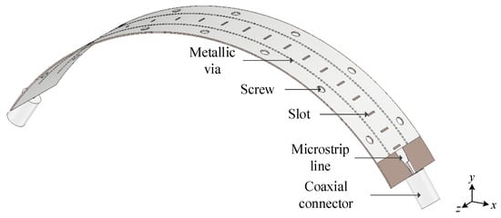 - Liu, Y.; Yang, H.; Jin, Z.; Zhu, J. Circumferentially conformal slot array antenna and its Ka-band multibeam applications. IET Microw. Antennas Propag. 2018, 12, 2307–2312. [Google Scholar] [CrossRef]