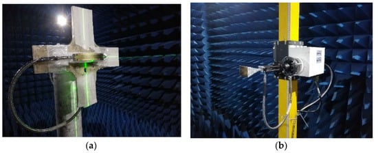 Measurement environment: (a) antenna under testing, (b) horn antenna.