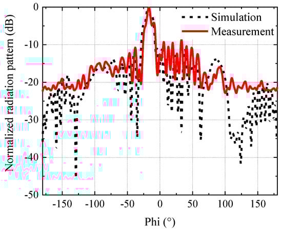 Comparison of normalized pattern between simulation and measurement results.