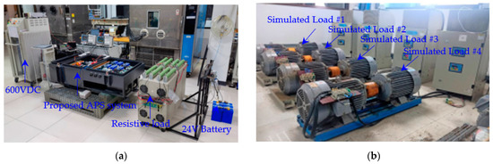 Figure 31b shows the measured dc input power ( and ) of the three-phase dc–ac inverters of the air pump motors (modules 3 and 4) under variable load torques (25–100%) and output frequencies (10–50 Hz). The dc input power of modules 3 and 4 ( + ) is 17.34 kW, given the load torque of 100% (full load) and output frequency of 50 Hz.
