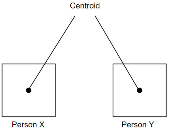 - As shown in Figure 3, the next step is to calculate the Euclidean distance between the centroids of the new and old bounding boxes. In this paper, the detection algorithm is used to obtain the bounding boxes, but individual IDs or labels are not assigned to each detected object. Instead, this method allows new and old targets to be linked.