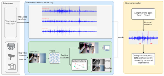 As shown in Figure 5, the workflow of this study primarily involves the integration of video streams and data streams, video stream detection and tracking, and annotation of anomalous data. The following are detailed descriptions of these steps: