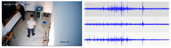 From the figure, it can be observed that when the interfering personnel with ID 17 is not detected due to anomalies, the trajectory of the target is adjusted by the algorithm, resolving the issue of trajectory abnormality. Subsequently, based on the obtained interference time points and trajectories, the time-series data collected by the seismic station are annotated with abnormal data. The specific effect of this annotation is illustrated in Figure 11: