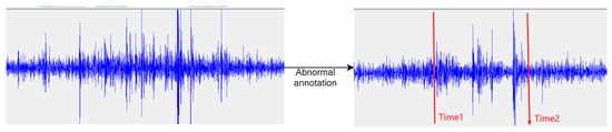As depicted in Figure 8, after conducting video-stream analysis, we can obtain the detected time points of interference. Subsequently, we can annotate the corresponding segment of abnormal data within the time-series data stream. This allows for the labeling of interference data present in the seismic data collected by the current seismic station. By completing the annotation process, we gain a better understanding of the interference within the seismic data.