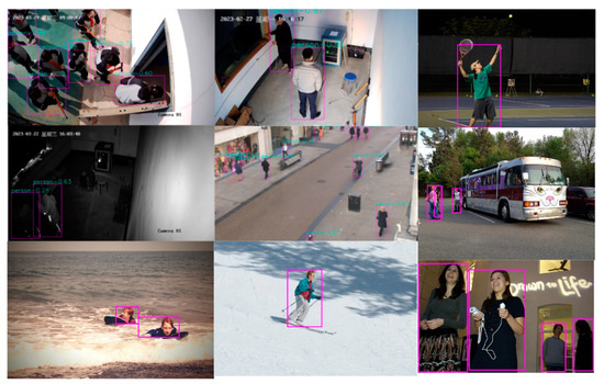 To visually validate the detection performance of the YOLOv5 model in real-world scenarios, we conducted separate verifications for personnel detection in different scenes. The detection results are shown in Figure 9, providing a visual representation of the model’s performance in detecting pedestrians in various scenes.