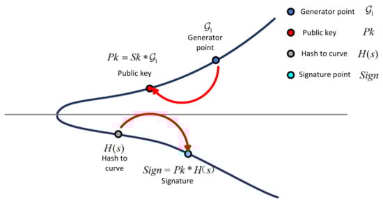 When generating a BLS signature, we first hash the curve of the message and then multiply the coordinate points on the curve obtained from the corresponding curve hash by the private key to obtain the signature. The result is the points on the curve. The signature generation process is shown in Figure 1.