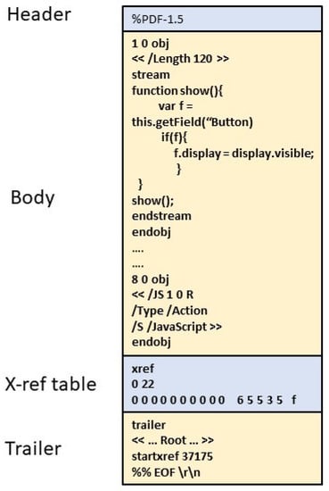 PDF was created as a versatile format to enable sharing of text, rich media, images, etc. independent of hardware or software platforms and in a consistent way. It was invented by Adobe in 1993 and has now become one of the most widely used standards for sharing documents. The PDF format was standardized into an ISO 32000-1:2008 [16] open standard. The typical structure of a PDF document is shown in Figure 1 and consists of four parts: