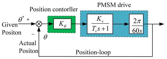 In order to guarantee the accuracy and the following performance of the system, the typical type I system is used for the current-loop designing and the typical type II system is used for the speed-loop. Afterwards, the position-loop control structure diagram can be obtained, as shown in Figure 3.