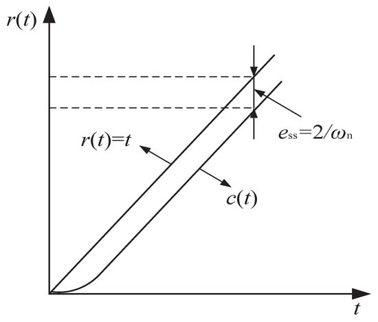 As shown in Figure 5, the response of a second-order system is , when the input is a unit ramp signal , and the steady-state error value is . The transient component of the ramp response is an aperiodic damping function.