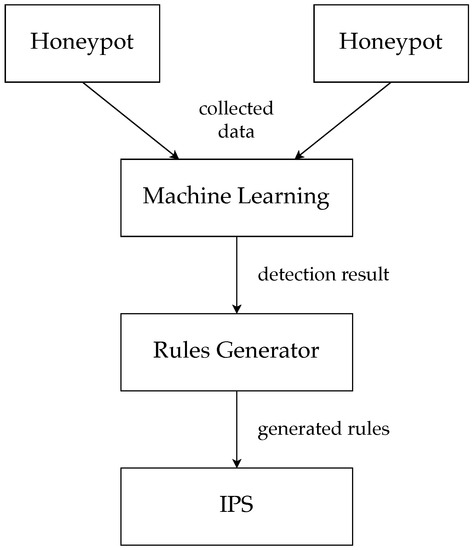 - Yamamoto, Y.; Yamaguchi, S. A Method to Prevent Known Attacks and Their Variants by Combining Honeypots and IPS. In Proceedings of the 2022 IEEE 11th Global Conference on Consumer Electronics (GCCE), Osaka, Japan, 18–21 October 2022; pp. 302–305. [Google Scholar]