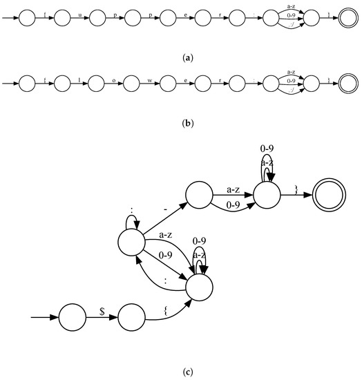 - Møller, A. dk.brics.automaton—Finite-State Automata and Regular Expressions for Java. 2021. Available online: http://www.brics.dk/automaton/ (accessed on 1 June 2023).