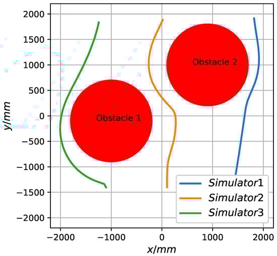 In order to enhance the credibility of the test, the parameters of the obstacle avoidance controller are selected in accordance with Table 3. The artificial potential function parameters are shown in Table 6. The initial position, desired position, and radius settings are shown in Table 7.