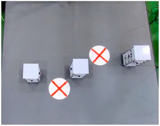 The obstacle avoidance motion trajectory of the satellite simulator and the relative motion error are shown in Figure 15 and Figure 16. Figure 17 is a video screenshot during the obstacle avoidance process of the satellite simulator. The tracking error between the satellite simulator and the desired position at the next time instant is shown in Figure 18. It can be seen that under the action of the second-order terminal sliding mode obstacle avoidance controller proposed in Section 3, the satellite simulator can complete the control task in the predetermined situation.