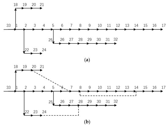 Utilizing the IEEE-33 standard as a basis, two distinct scenarios are established to validate the efficacy of the method through a comparative analysis. In Scenario 1, the generation planning scheme undergoes optimization exclusively. To distinguish these two scenarios, the grid structure is not optimized, and only the power generation and energy storage planning is carried out in Scenario 1. Conversely, Scenario 2 involves the implementation of the proposed planning model in Figure 1, which means that both the grid planning layer and power generation and energy storage planning layer are considered in Scenario 2.