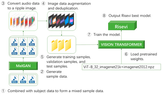 In this section, we mainly describe the Risevi model design and implementation process. In the process of Risevi model design, we first design an audio sample generation method based on MelGAN; secondly, we design an audio sample feature extraction method based on sampling rate; then, we construct a sample classification method based on Vision Transformers; after iterative training, finally, we obtain the best Risevi model. In implementing the Risevi model, the software platforms we use are Python 3.8.16, Keras 2.6.0, LightGBM 3.3.5, Tensorflow-GPU 2.6.0, sklearn 0.0, torch 2.0.1, and transformers 4.29.1, vit-keras 0.1.2.