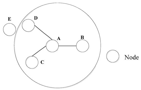 When calculating the hops, the DV-Hop counts all neighboring nodes in the transmission range of the anchor node as one hop. As represented in Figure 3, let nodes B, C and D be one hop nodes in communication range of node A. Node E is outside communication range of A and can receive place information of anchor node forwarded by node D. Therefore, hops of node E are two. As shown in Figure 3, the different distance of nodes B and A, C and A, D, and A are relatively large, while the distance between E and A, and D and A is similar, but the hops are not the same. In this case, using traditional DV-Hop positioning algorithms will cause significant errors.
