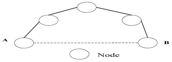 The localization accuracy of the DV-Hop mainly rests with whether ADPH is reasonable. In the case of multiple hops, let the hops between nodes B and A be four, and the line distance between B and A is approximated distance of the DV-Hop algorithm. It can be intuitively made out that there is a large deviation from the actual distance shown by the dashed line, as shown in Figure 4. Therefore, as hops increase, there is a significant localization error in areas with low node density.